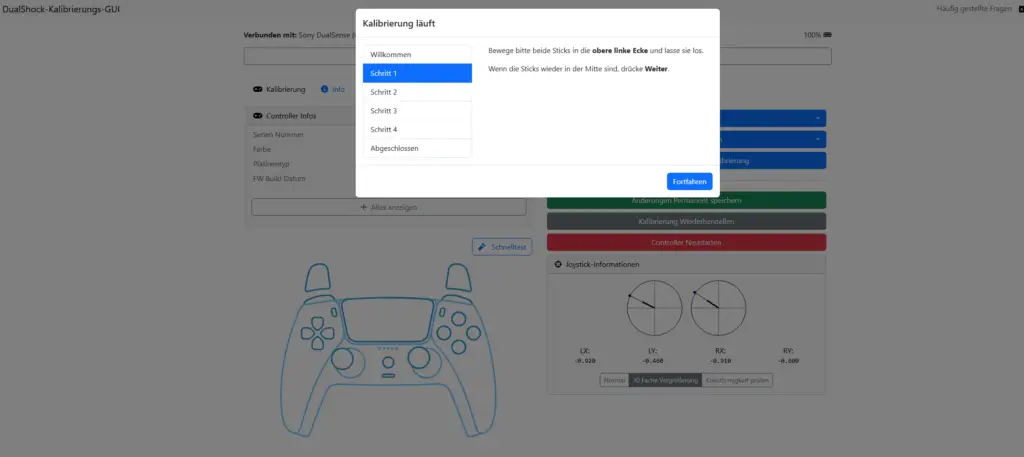 Mit diesem Schritt beheben wir etwaig bestehenden Stick Drift, indem wir die Mittelposition der Analogsticks neu festlegen.